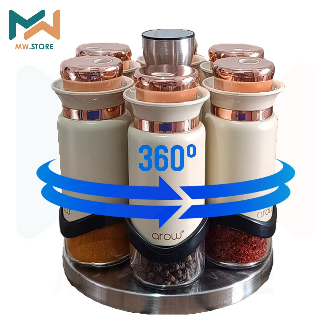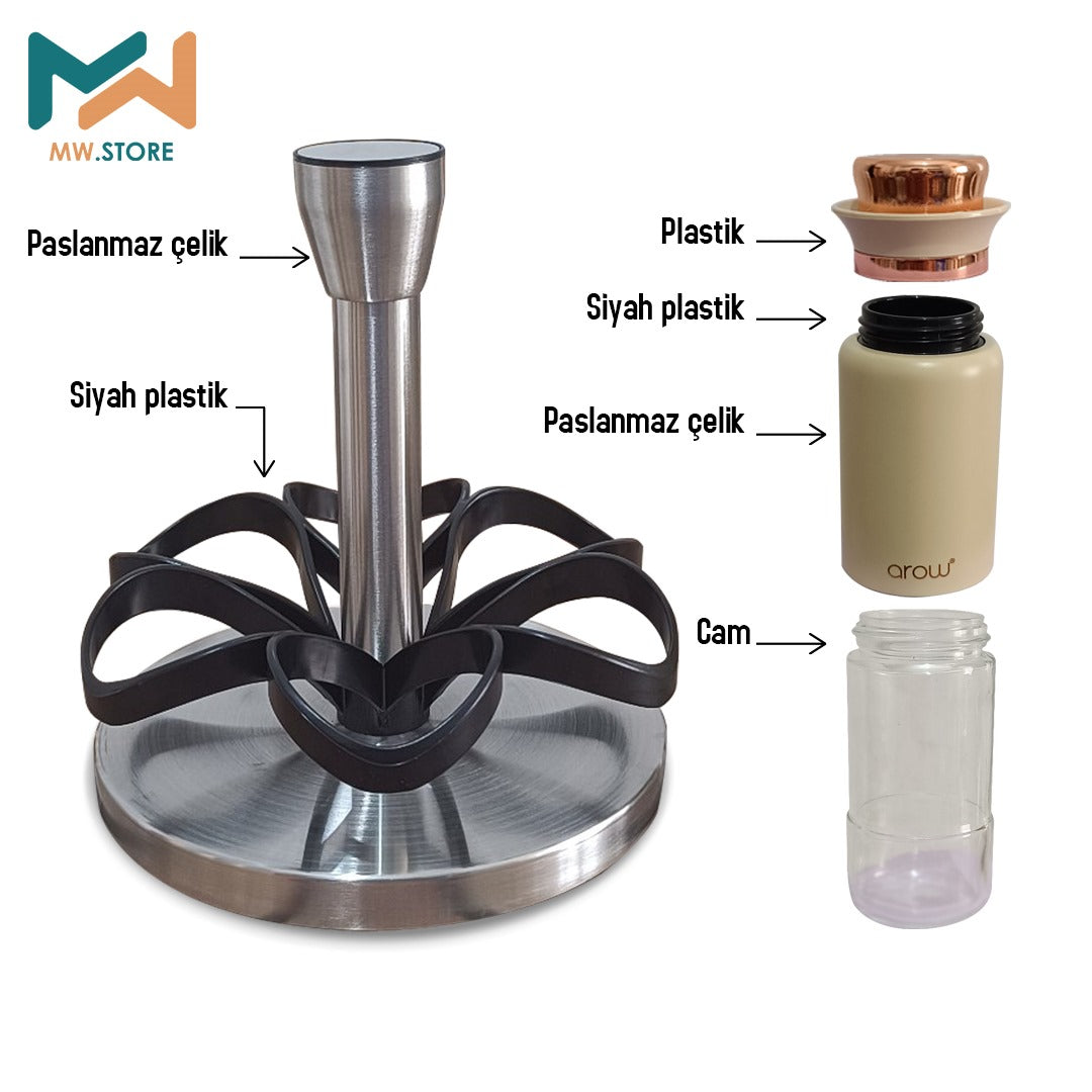 Mutfağınıza şıklık ve düzen katan bu lüks baharatlık seti,6 adet cam kavanozdan oluşur. Altında döner tabla bulunur, böylece tüm baharatlara kolayca ulaşabilirsiniz. Modern tasarımı ve zarif kapak detaylarıyla hem kullanım kolaylığı sağlar hem de mutfağınıza estetik bir dokunuş katar.